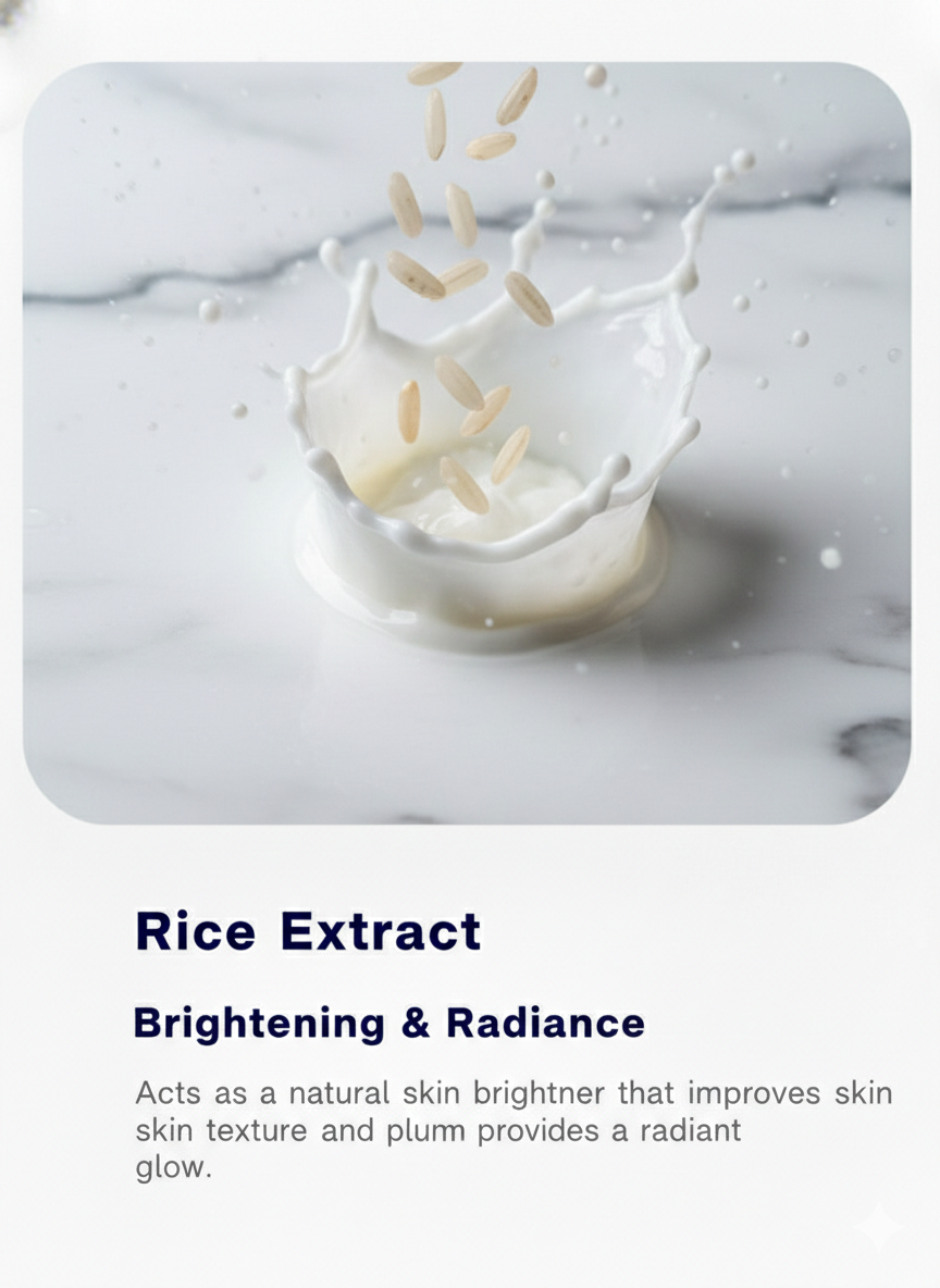 Refine your daily hydration with Rice Water Moisturizer, a rich yet lightweight formula designed to deeply moisturize while restoring natural glow and skin comfort. Infused with Rice Water Extract, this advanced moisturizer helps brighten the skin, improve softness, and promote a smooth, healthy-looking complexion.